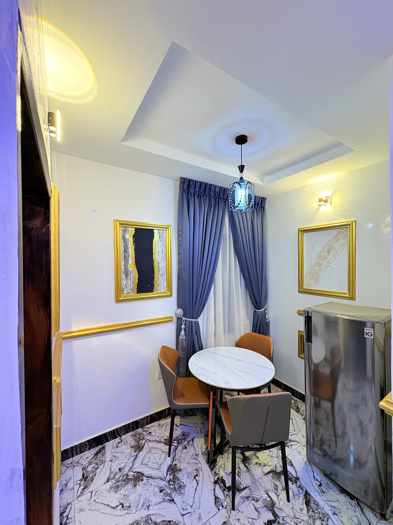 The Oakwood Luxury Suite offers a premium living experience in the heart of Lekki Phase 1, combining elegant aesthetics with maximum comfort. The apartment is equipped with plush furnishings, high-quality appliances, and a relaxing ambience tailored for both short and extended stays.